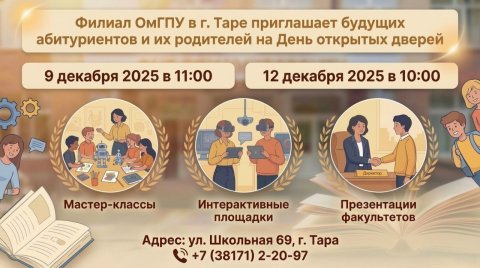 Филиал ОмГПУ в г. Таре приглашает будущих абитуриентов, их родителей и учителей на Дни открытых дверей!