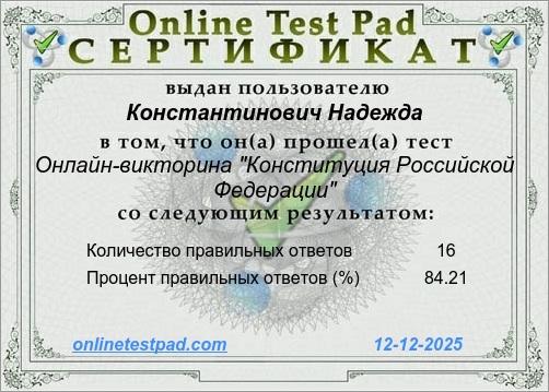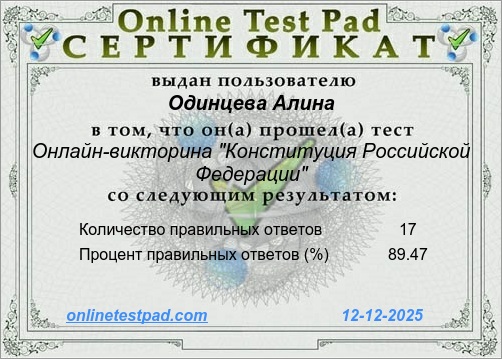 12 декабря в России отмечался День Конституции. Традиционно кафедра гуманитарных дисциплин и правоведения провела онлайн-викторину «Конституция Российской Федерации», участие в которой приняли студенты и школьники. Викторина включала в себя 25 вопросов различных типов и различного уровня сложности.