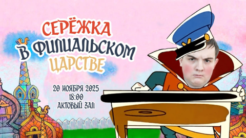 Дорогие студенты, преподаватели и гости!Приглашаем вас 20 ноября в 18:00 в актовый зал нашего университета насладиться творческой постановкой под названием «Серёжка в Филиальском царстве»!