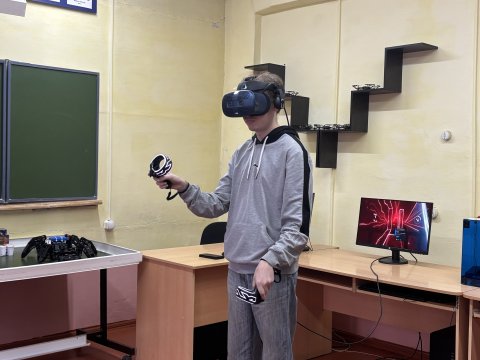 Вначале участники мастер-класса рассмотрели виды реальности и их характеристики, принцип работы систем виртуальной реальности, сферы применения и перспективы развития. Затем обсудили устройство системы виртуальной реальности HTC Vive Cosmos, правила надевания шлема и контроллеров, а также общие требования техники безопасности перед погружением в VR. Далее изучили онлайн-сервисы цифрового распространения программ Steam и SteamVR, получили инструкции по настройке и работе с ними.