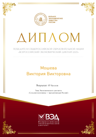 Студентка Филиала ОмГПУ в г. Таре – победитель Всероссийского экономического диктанта - 2025!